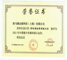 中國數(shù)字多媒體展示金獎(jiǎng)