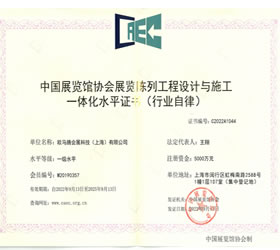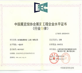 中國展覽館協(xié)會(huì)展覽工程企業(yè)一級(jí)資質(zhì)證書